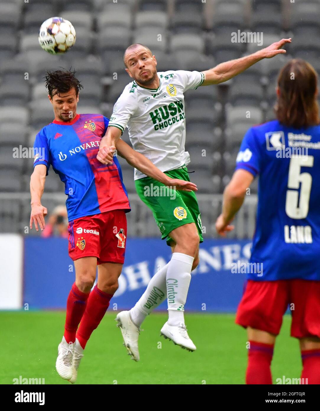 Basel Switzerland 19th Aug 2021 Captain Jeppe Andrup Andersen 8 Hammarby And Darian Males 19 Basel Battle For The Ball Duel During The Uefa Europa Conference League 2021 22 Football Match Between Fc